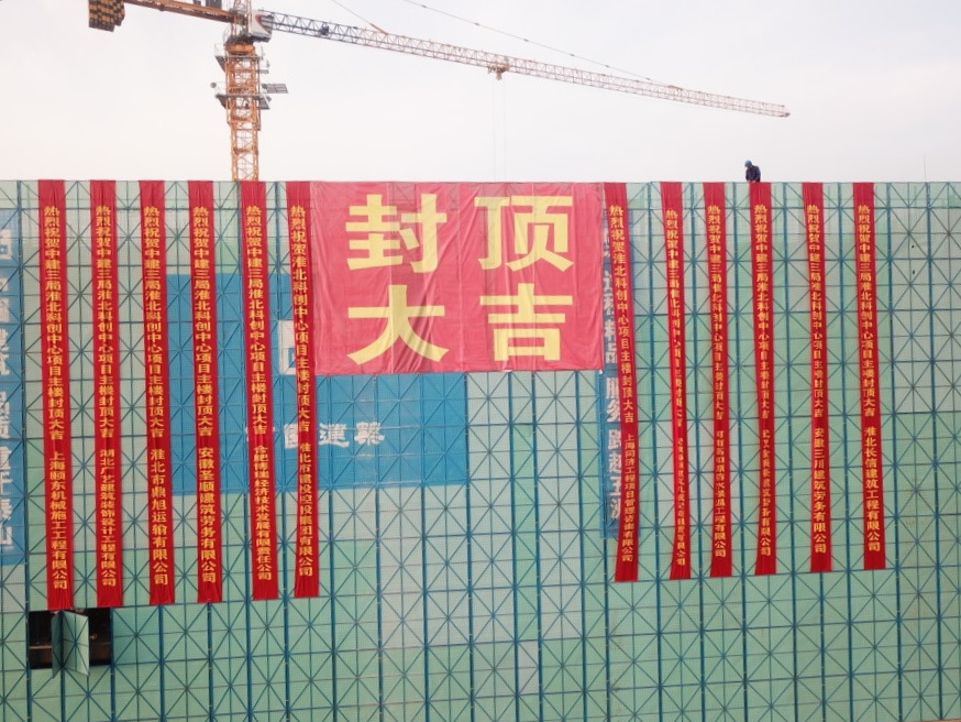 淮北市科創(chuàng)中心162米超高層主體封頂