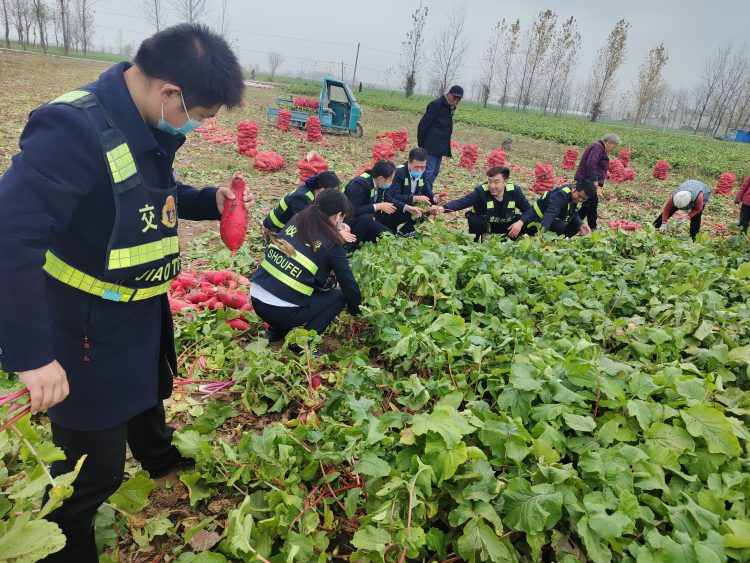 今年11月正值蘿卜上市的關(guān)鍵時(shí)期,可是偏偏遇上疫情來(lái)襲,愁壞了臨渙鎮(zhèn)前袁樓村的農(nóng)戶,因缺少勞動(dòng)力,銷售渠道也減少,蘿卜滯銷。堅(jiān)守在S202收費(fèi)站的黨員干部了解到該情況后,在積極應(yīng)對(duì)疫情防控的同時(shí),主動(dòng)對(duì)接農(nóng)戶,收費(fèi)之余組織站內(nèi)員工來(lái)到田間地頭,在農(nóng)戶的指導(dǎo)下,協(xié)助采收、打包、搬運(yùn),大家忙得熱火朝天。本次助農(nóng)活動(dòng),不僅收獲了勞動(dòng)豐收的喜悅,勞作之余,在場(chǎng)的每名員工還自掏腰包購(gòu)買滯銷蘿卜,用實(shí)際行動(dòng)為群眾辦實(shí)事,辦好事,為鄉(xiāng)村振興貢獻(xiàn)了微薄之力,受到當(dāng)?shù)匕傩盏囊恢潞迷u(píng)。