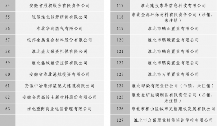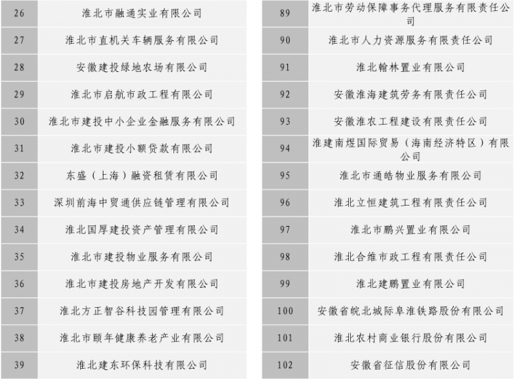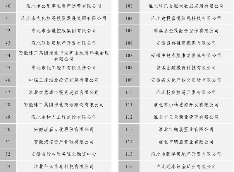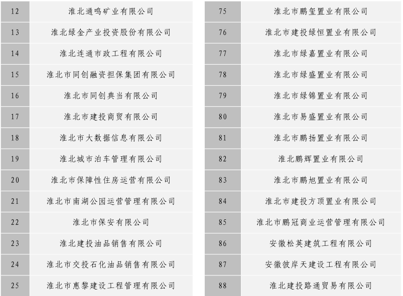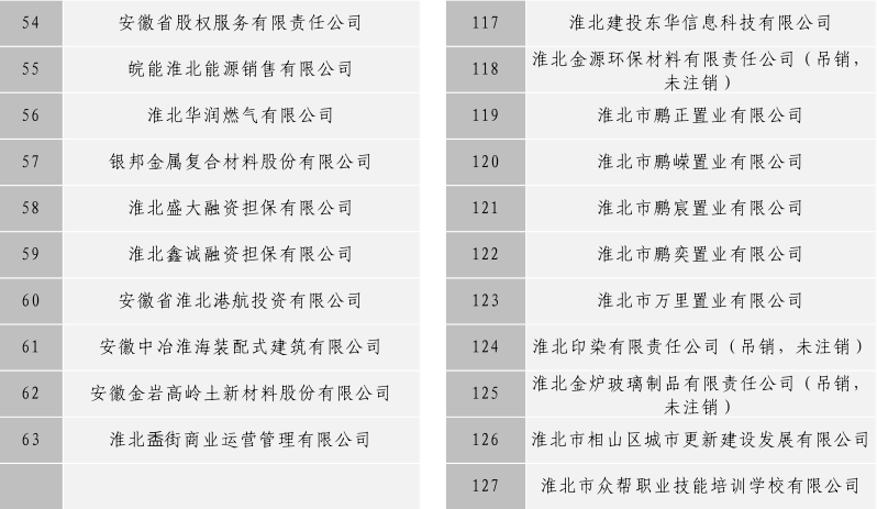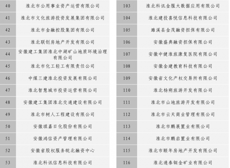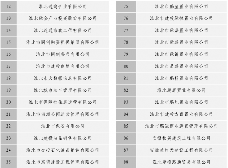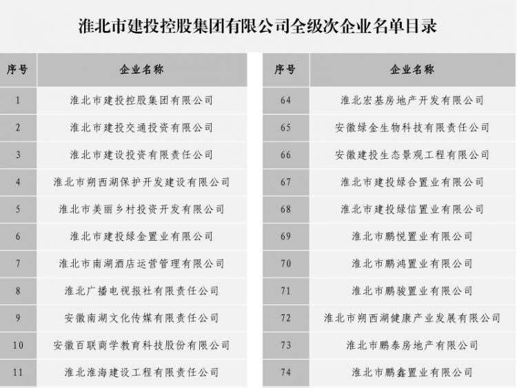 淮北市建投控股集團有限公司全級次企業名單目錄