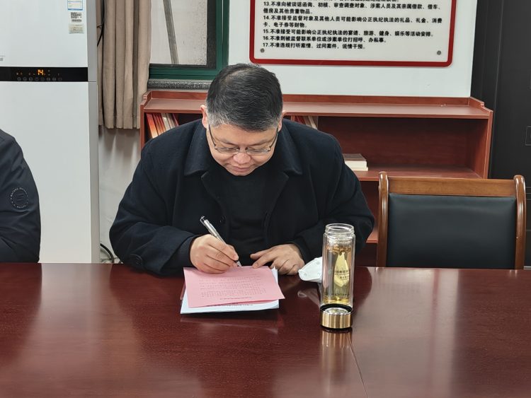 會后,全體紀檢監察干部分別簽署了《拒絕酒駕醉駕承諾書》,紛紛表示簽訂承諾書,既是表率,也是約束,作為紀檢監察干部,自覺以更高標準、更嚴要求踐行忠誠干凈擔當!樹牢紀律和規矩意識,消除僥幸心理,從思想源頭上遏制紀檢監察干部發生酒駕醉駕違紀違法行為,以實際行動為大力營造風清氣正的良好政治生態、遵紀守法的社會環境提供堅強保障。