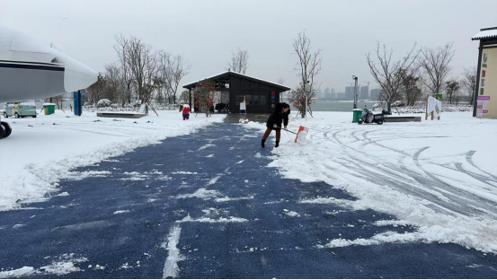 自我市本次降雪以來,在市里啟動三級響應后,南湖公園公司第一時間響應號召,做好應急處理,加強園區巡邏,園區內的游客進行安全勸離,同時針對園區情況開展掃雪除冰行動,對景區內橋梁、道路、木棧道安排人員進行清掃,防止冰凍安全隱患,安排24小時人員值班,不折不扣做好應對雨雪冰凍天氣各項工作,出動人員100余人次,使用車輛3輛,使用化雪鹽15袋,共計清掃園區道路10公里