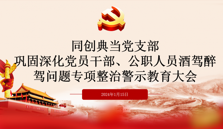 為更好部署市同創典當公司元旦、春節期間作風建設工作,明確紀律要求,根據市建投集團紀委關于做好2024年元旦春節期間糾“四風”樹新風工作的通知要求,1月15日,典當黨支部召開鞏固深化黨員干部、公職人員酒駕醉駕問題專項整治警示教育大會。