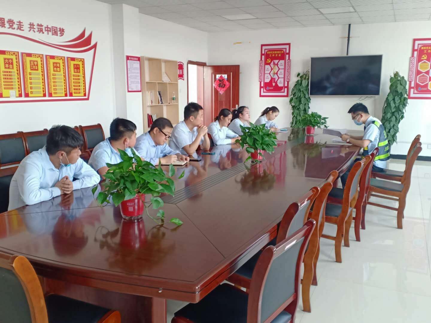5月27日,融通公司黨支部將“黨建一點課”與收費站班務會相結合,組織收費站各部室人員學習《S202淮北收費站安全管理制度》、《S202淮北收費站票款日清制度》、《淮北市融通實業有限公司物資采購管理辦法》,同時進行黨建工作相關知識的宣傳,并與大家共同分享融通黨支部疫情防控期間先進事跡,通過本次會議,增強了公司職工的集體榮譽感,也為開展融通黨支部黨建融合提升工作邁出了第一步。