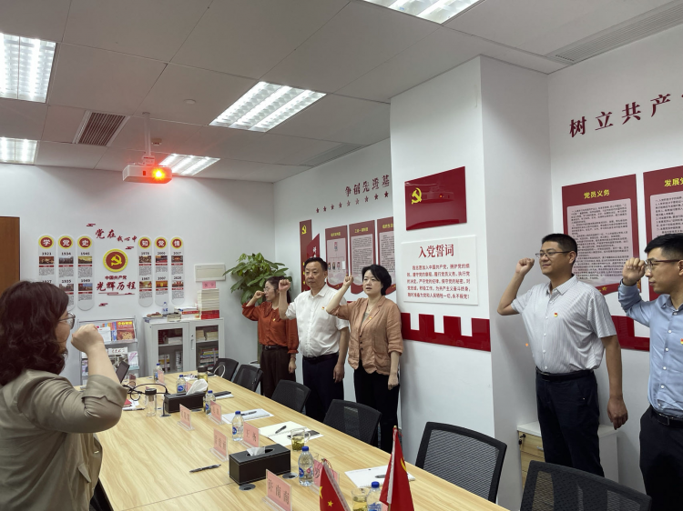 隨后,集體前往東盛(上海)融資租賃有限公司召開黨建共建座談會。座談會開始前,全體黨員在東盛(上海)融資租賃有限公司總經理何曉璐的帶領下,面對鮮紅的黨旗,重溫了入黨誓詞。鏗鏘有力的誓言回蕩在會場,激勵著每一位黨員不忘初心,繼續前進,為實現中華民族偉大復興貢獻自己的力量。