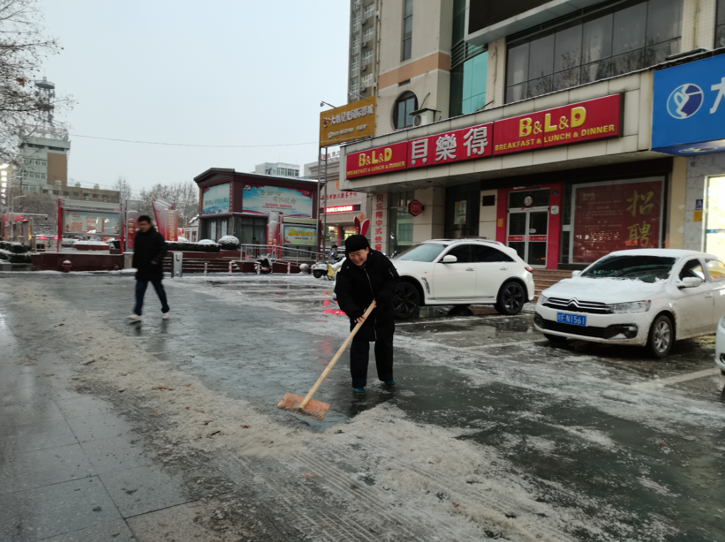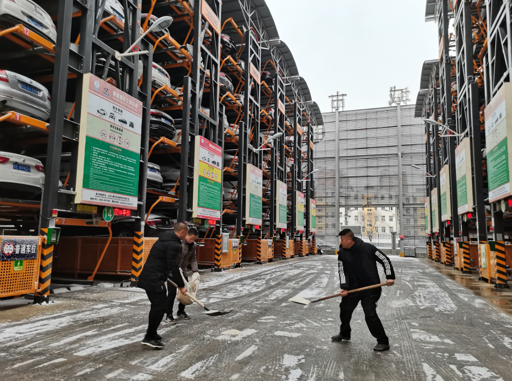 經過大家的齊心協(xié)力和相互配合,一條安全暢通的道路展現(xiàn)在眼前。此次大降雪同時也給公司的停車場帶來了不小的壓力,停車場管理人員不懼寒冷清掃積雪,潑灑工業(yè)用鹽防止道路結冰,確保場內車輛通行安全。除雪過程不僅帶來了團結友愛,樂觀向上,頑強拼搏的戰(zhàn)斗精神,也讓員工體味著和諧協(xié)作帶來的快樂。