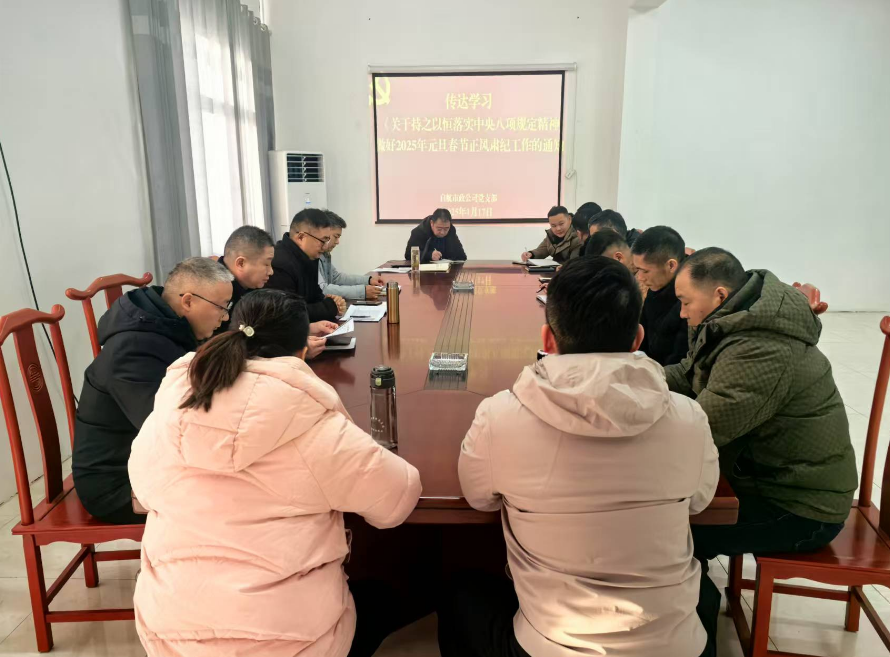 支部書記周宏謀重申了中央八項規定,要求公司所有職工嚴格遵守各項紀律規矩和有關規定,干凈干事、廉潔過年。要緊盯年節易發多發的作風頑疾,從嚴從重查處各種頂風違紀違法問題。支部班子成員要帶頭落實相關要求,嚴以律已、以身作則,切實履行好“一崗雙責”。