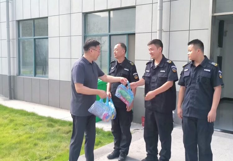 淮北大地連日高溫,驕陽似火,酷熱難耐。為切實保障在高溫環(huán)境中堅守崗位的一線安保人員身體健康和勞動安全,7月23日上午,集團公司黨委委員、副總經理張立哲同志一行分別前往保安公司金融科技服務產業(yè)園及人防電廠2號門駐點,開展夏季送清涼慰問活動,為押運人員和人防保安送去了防暑降溫物資和誠摯的關懷。