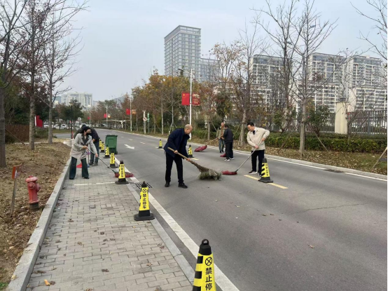 活動現場,大家分工協作,先把主通道的落葉清開,確保車輛進出順暢,再逐個清理車位上的落葉。參與人員熱情高漲,迅速分成多個小組,有的負責用掃帚將散落在各處的落葉歸攏成堆,有的手持簸箕將落葉裝入垃圾袋,大家配合默契、干勁十足。經過近3個小時的集中清掃,停車場環境煥然一新,車位線清晰可見,車輛進出秩序井然。