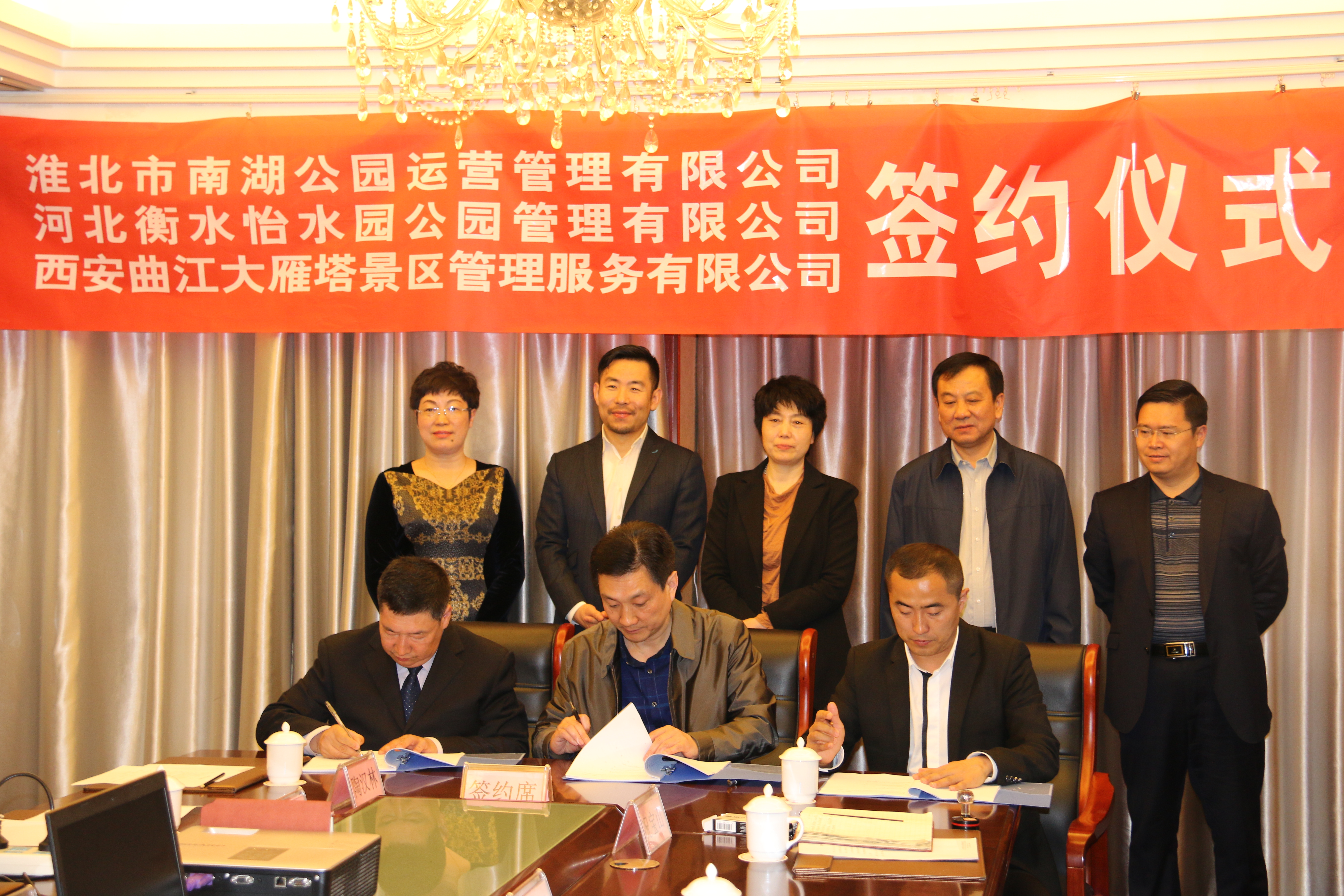 4月7日上午,南湖公園運營管理有限公司、河北衡水怡水園公園管理有限公司、西安曲江大雁塔景區管理服務有限公司就南湖景區托管項目舉行了簽約儀式。市政協副主席錢丹嬰等出席儀式并見證簽約。