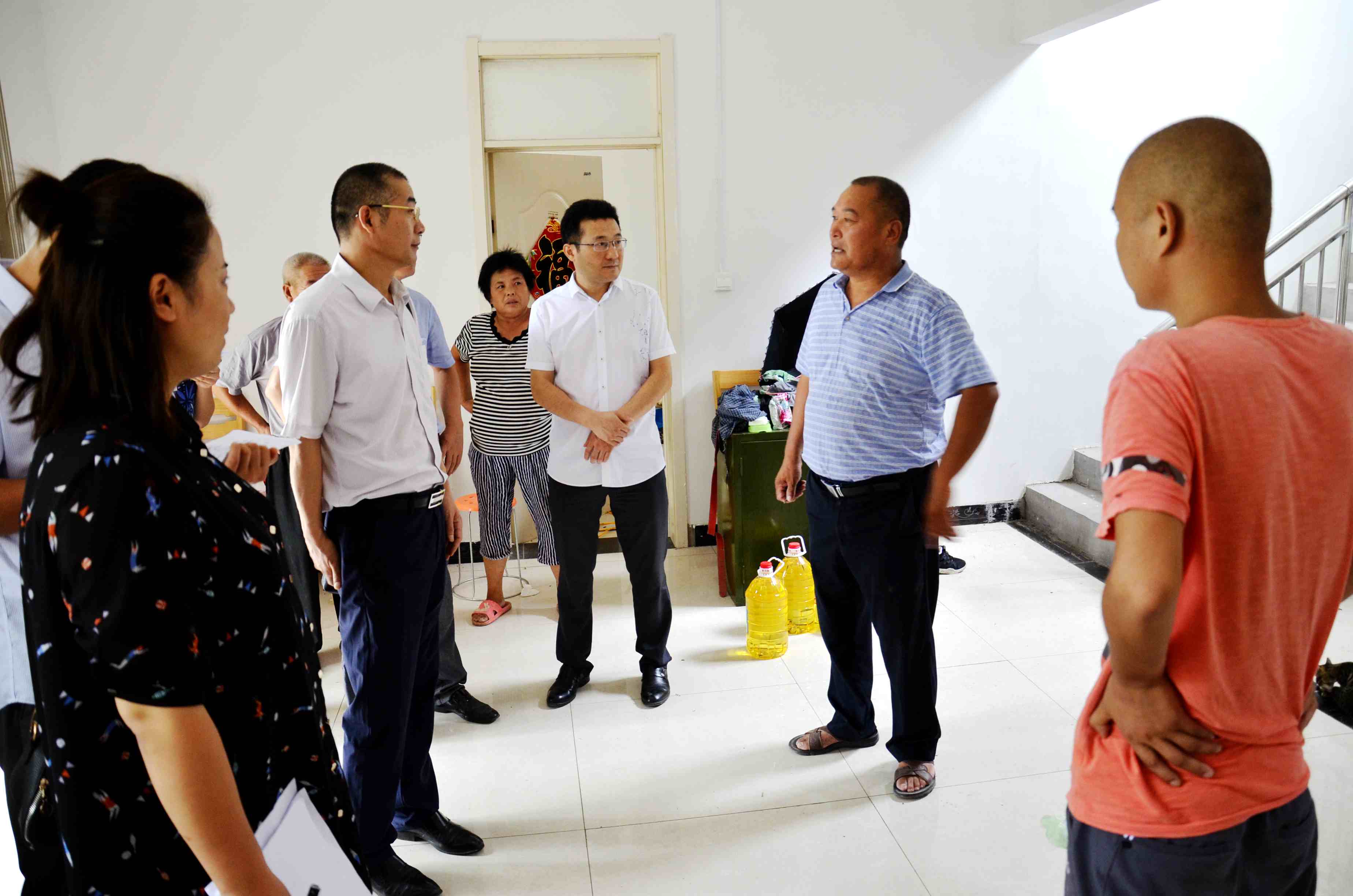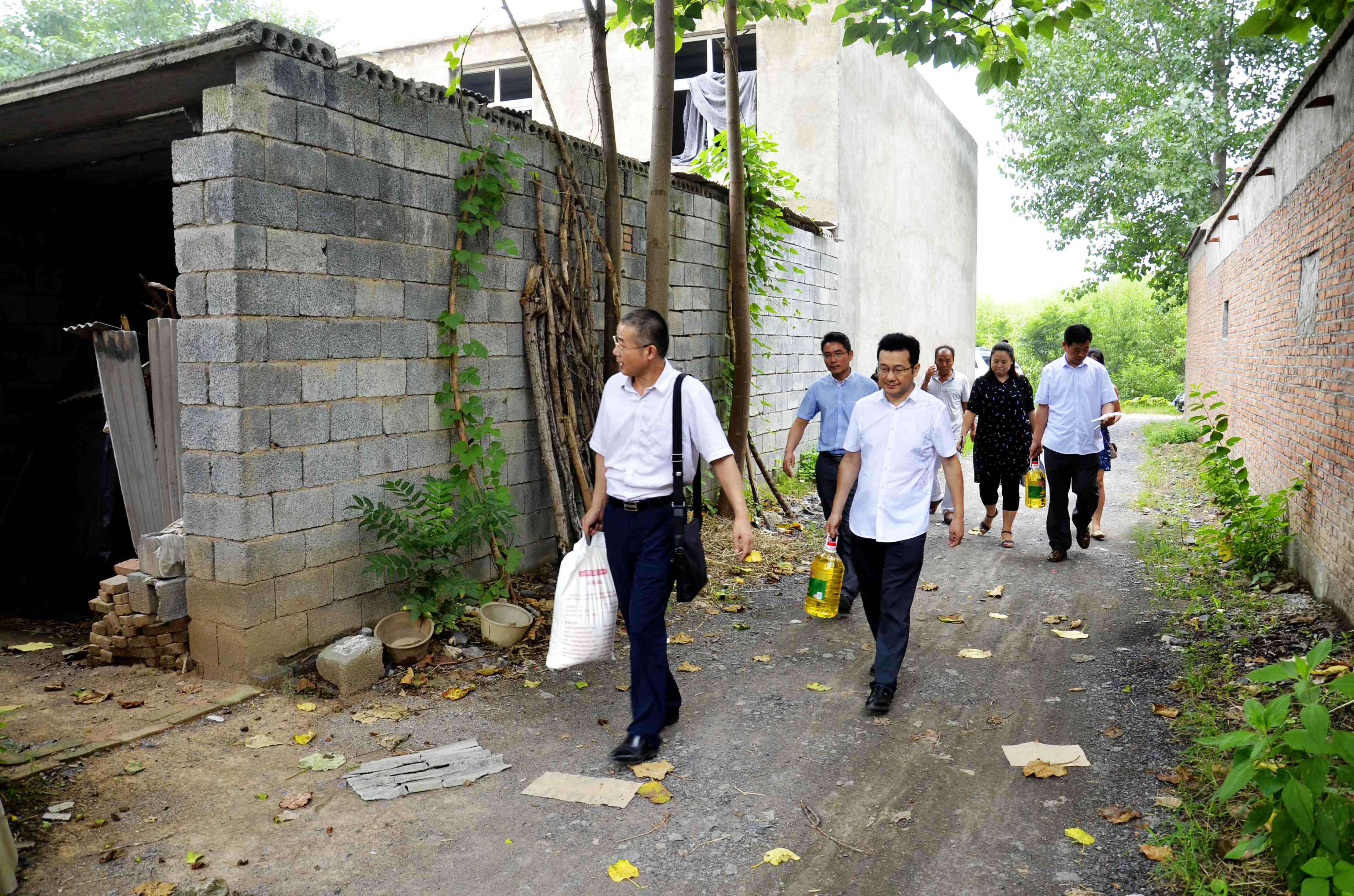 為進(jìn)一步做好精準(zhǔn)扶貧工作,打贏扶貧攻堅(jiān)戰(zhàn)役,落實(shí)“兩學(xué)一做”常態(tài)化教育實(shí)踐活動(dòng)。7月28日,市建投集團(tuán)扶貧幫扶隊(duì)成員一行八人冒著酷暑,頂著烈日,來(lái)到包保幫扶村——濉溪縣劉橋鎮(zhèn)火神廟村開(kāi)展扶貧幫扶工作,為村里47家貧困戶送去大米、面、食用油等慰問(wèn)品,在炎炎夏日,為貧困戶送去清涼和愛(ài)心。