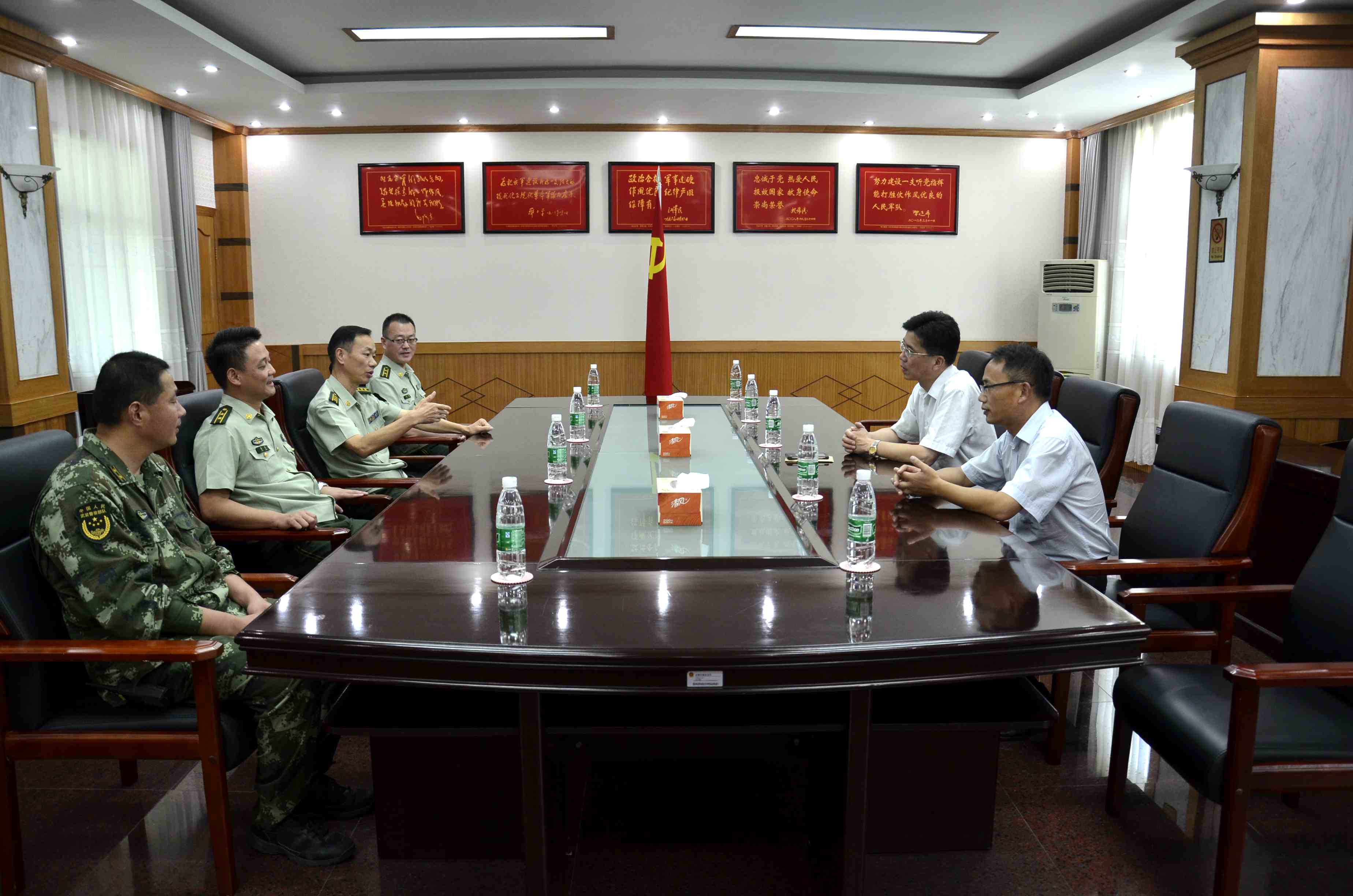 集團一行分別來到市武警支隊、市消防支隊,介紹了淮北建投基本情況及轉型發展工作情況,代表集團全體干部員工表達了對部隊官兵的節日問候和深深的敬意,并感謝兩家單位對集團工作的關心和支持,表示將繼續發揚擁軍優屬的光榮傳統,進一步做好軍民共建工作,共同為經濟發展做出貢獻。市武警支隊、市消防支隊負責人對王獻忠書記一行前來慰問并開展雙擁共建活動表示感謝。希望淮北建投今后一如既往地支持軍隊建設,進一步鞏固和發展軍地雙擁共建、軍民融合發展的大好局面。