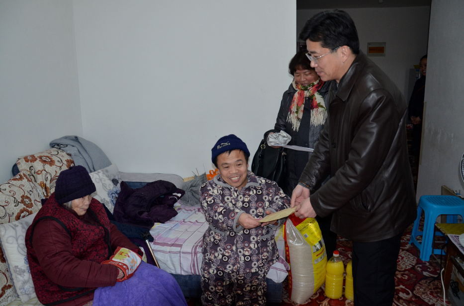 在2018年春節(jié)來(lái)臨之際,為了使困難家庭度過(guò)一個(gè)快樂(lè)、祥和的新年,讓他們感受到市建投集團(tuán)的關(guān)心和溫暖。2月8日上午,建投集團(tuán)紀(jì)委書(shū)記王獻(xiàn)忠來(lái)到康樂(lè)社區(qū)太陽(yáng)城小區(qū),對(duì)困難戶(hù)宋興福一家進(jìn)行寒冬送溫暖慰問(wèn)活動(dòng),為他們送去了米、面、油及慰問(wèn)金。