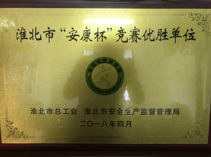 2017年,市總工會、市安全生產監督管理局在全市開展了以“安全培訓提素質、班組管理強基礎”為主題的“安康杯”競賽活動。淮北市建投控股集團有限公司為保障企業的安全生產及職工的安全健康,充分調動廣大職工參與群眾性安全生產活動的積極性、主動性和創造性,認真貫徹落實黨的十九大精神,在集團公司范圍內開展2017年度“安康杯”競賽活動,在安全生產工作中取得了優異成績,被淮北市總工會和淮北市安全生產監督管理局評為淮北市“安康杯”競賽優勝單位。