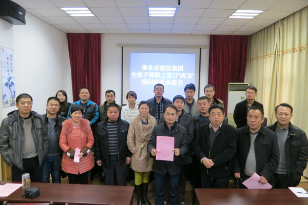 1月26日下午,市建投集團召開全體人員會議,通過簽訂廉政承諾書和印發家庭助廉倡議書等形式,要求廣大黨員干部要嚴守底線,提高覺悟,務實節儉廉潔過“兩節”。