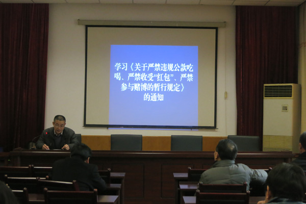 12月23日下午,集團公司組織全體干部職工,認真傳達學習市委辦、市政府辦《關于嚴禁違規公款吃喝的暫行規定》、《關于嚴禁收受“紅包”的暫行規定》、《關于嚴禁黨員和干部參與賭博的暫行規定》的通知精神。