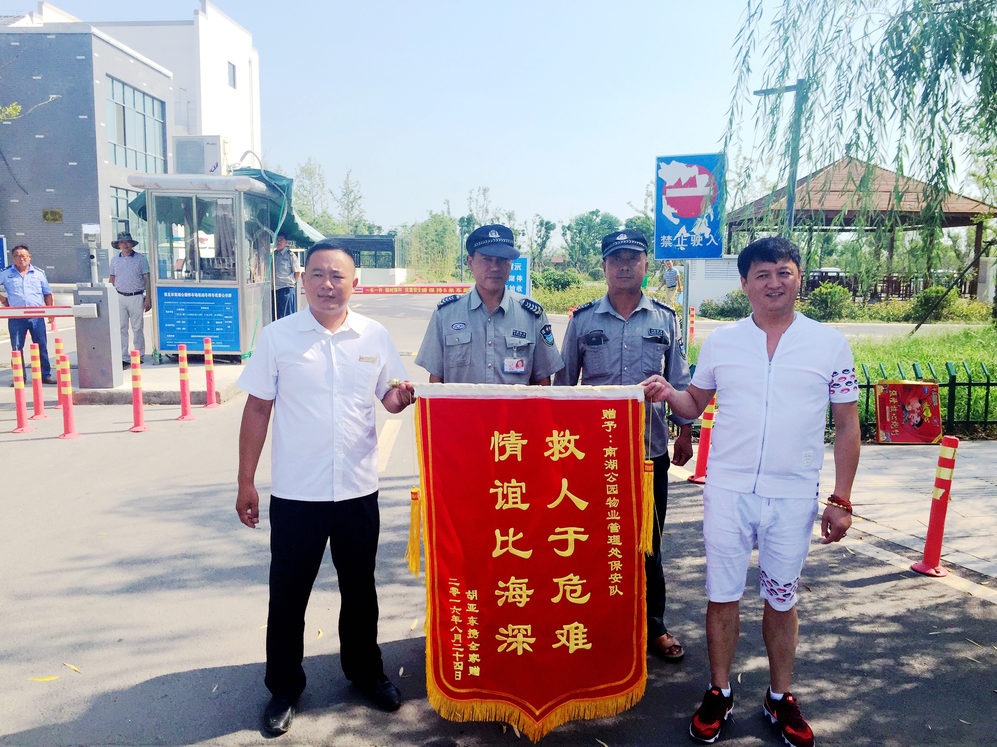8月24日上午,南湖公園迎來(lái)了一名特殊的游客,他帶著鞭炮、手捧錦旗,希望找到昨晚救下他親人的保安,當(dāng)面表示感謝。