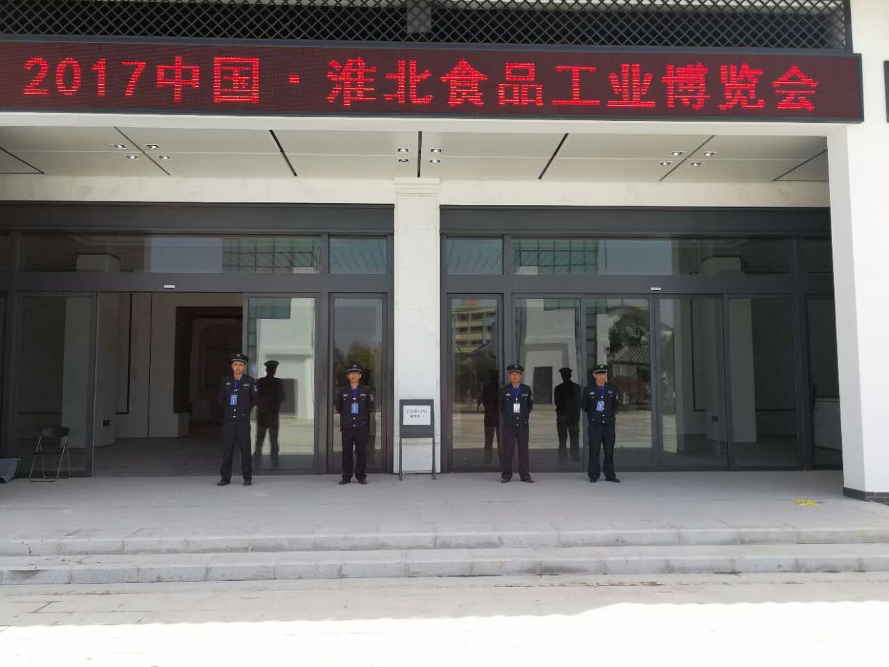 展會期間,淮北市保安有限公司保安隊員經過細致的工作,熱情的服務,圓滿完成2017淮北食品工業博覽會安保任務。