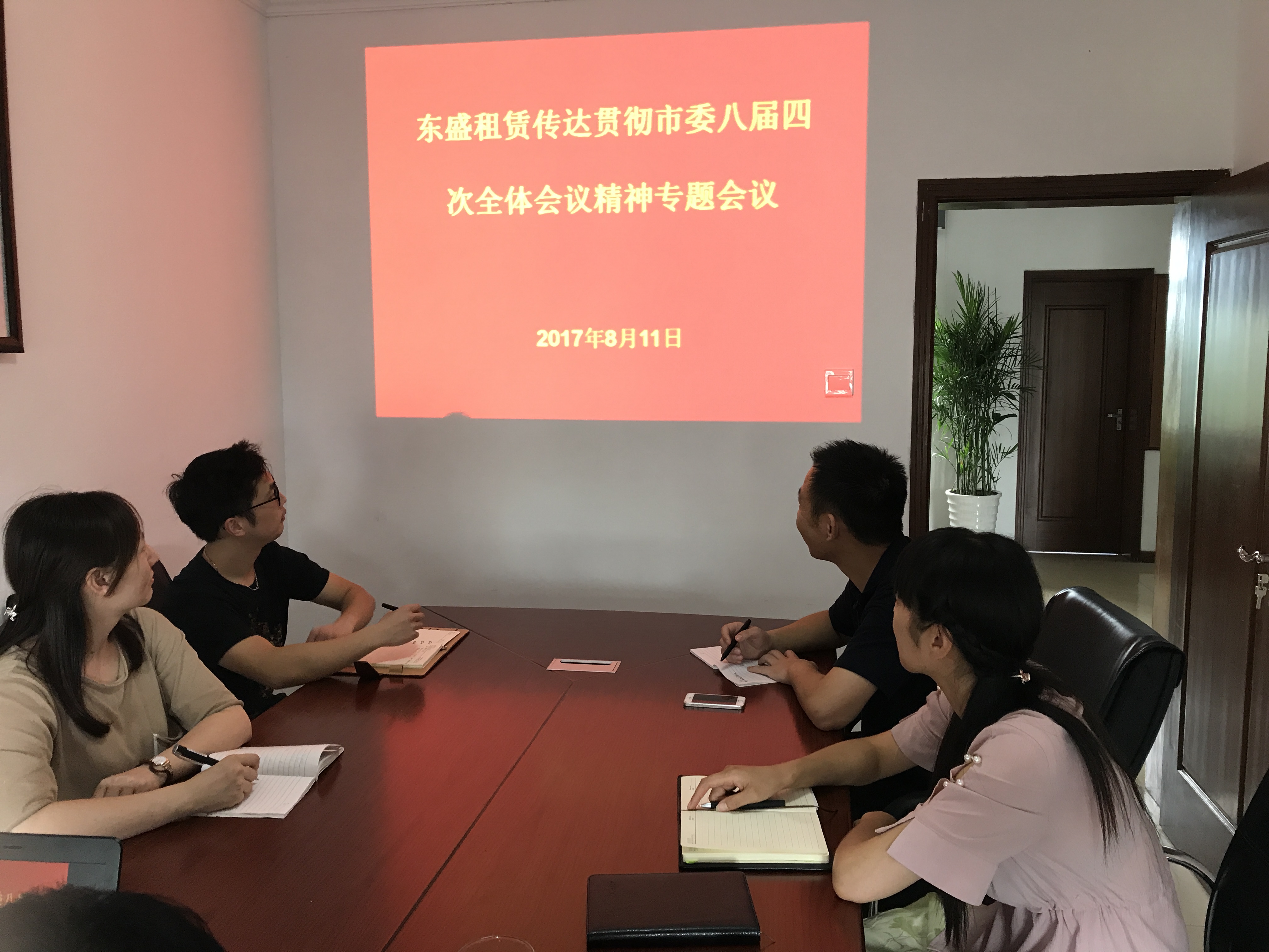 2017年8月11日下午,東盛(上海)融資租賃有限公司負責(zé)人王智召集公司全體員工在會議室傳達貫徹市委八屆四次全會精神,學(xué)習(xí)黃書記、戴市長重要講話內(nèi)容。通過學(xué)習(xí)黃書記、戴市長重要講話內(nèi)容,我們在今后工作中把全會精神作為開展好各項工作的動力,振奮精神抓開局,全力以赴促和諧,為建投集團開創(chuàng)發(fā)展新局面做出自己最大的努力。