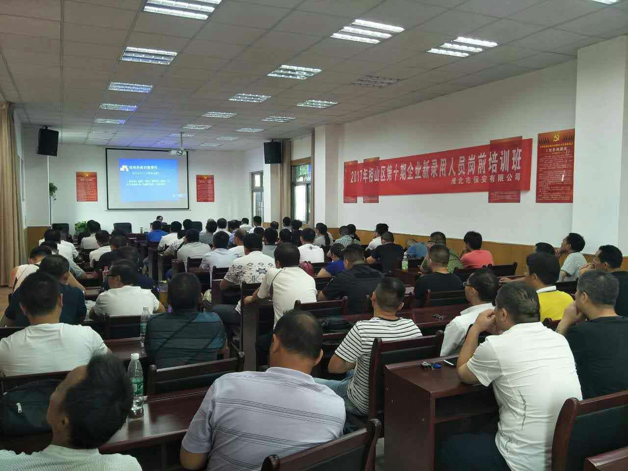 為提高保安員的整體業務素質,提升服務水準,更好的為客戶服務,為公司創造更好的經濟效益和社會效益,2017年8月16日由安徽百聯和保安有限公司主辦的第十期企業新錄用人員崗前培訓班在保安公司六樓會議室如期舉辦。此次培訓,參訓人數80人。