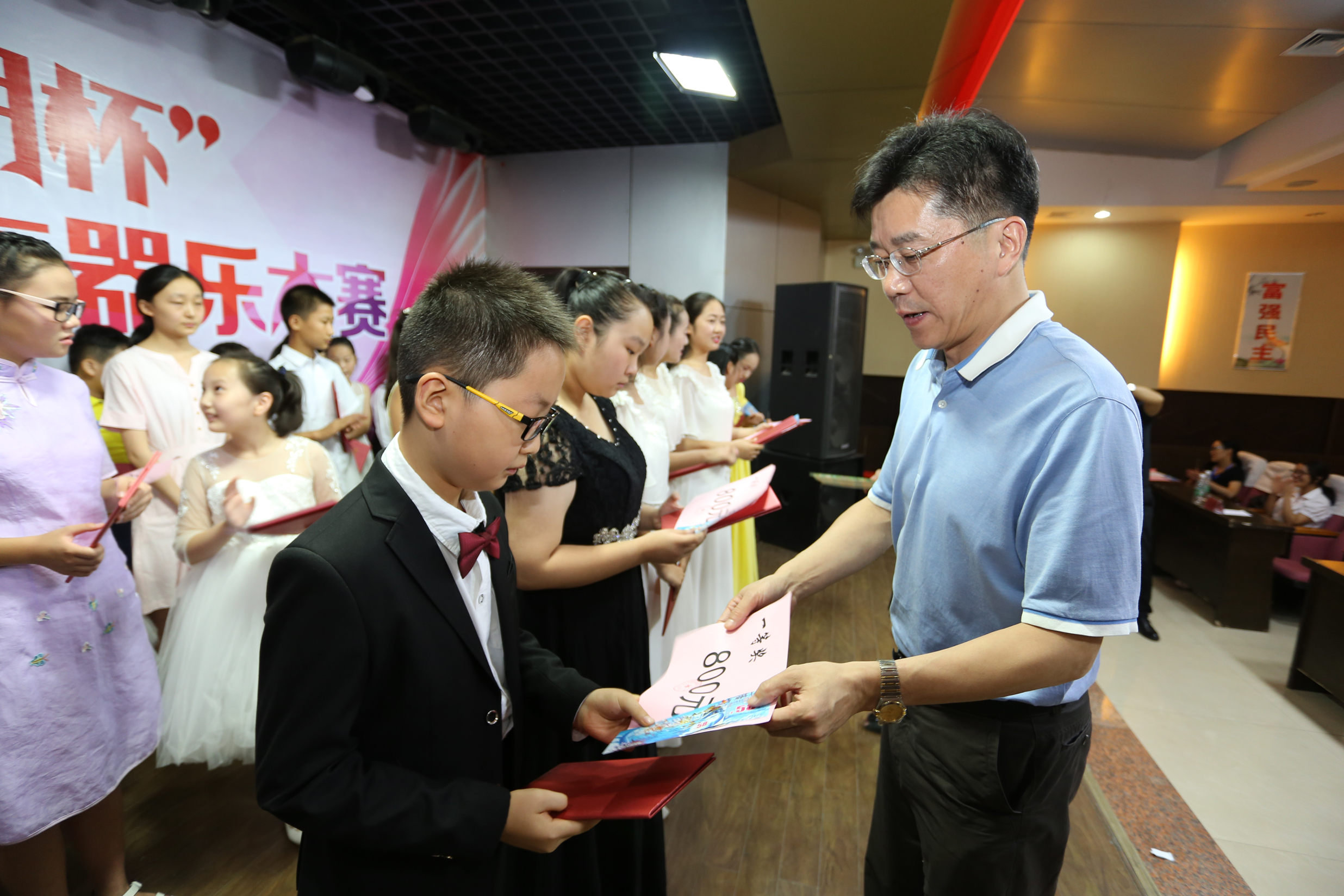 8月26日下午,“南湖杯”首屆青少年器樂大賽頒獎典禮在市老年大學一樓會議室舉行。淮北市文化旅游體育委員會黨委委員、副主任吳文閣,淮北市建投控股集團有限公司黨委委員、紀委書記王獻忠等出席頒獎典禮,并為獲獎選手頒獎。
