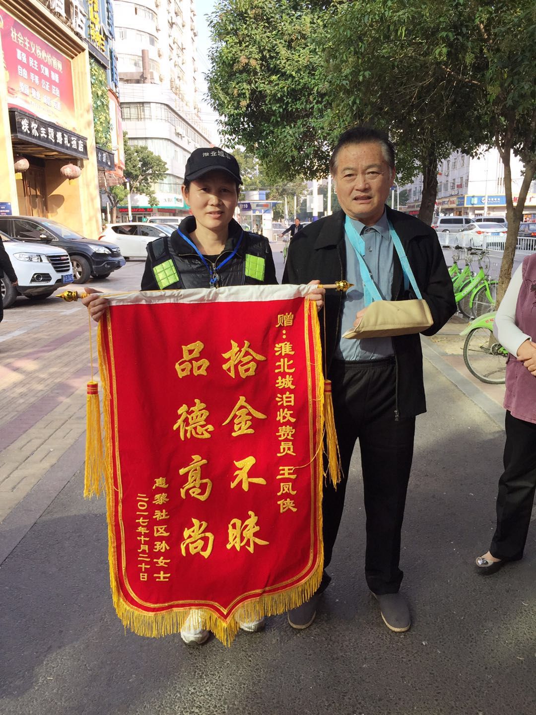 導語:1031日上午,失主王乃志向淮北城市泊車管理有限公司收費員王鳳俠贈送錦旗,衷心感謝!收費員王鳳俠拾金不昧,我被這位普通的收費員高尚的品質(zhì)深深感動。