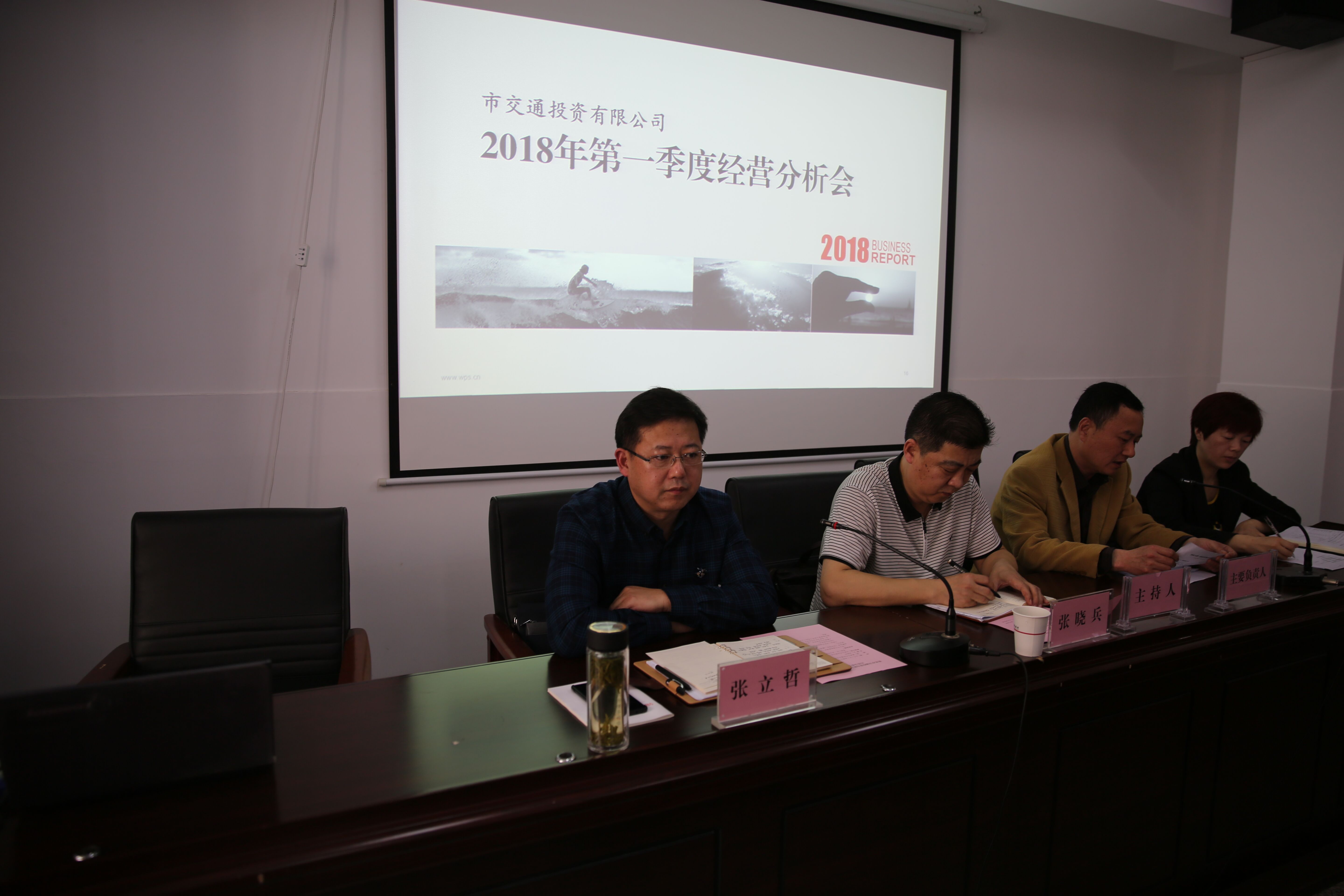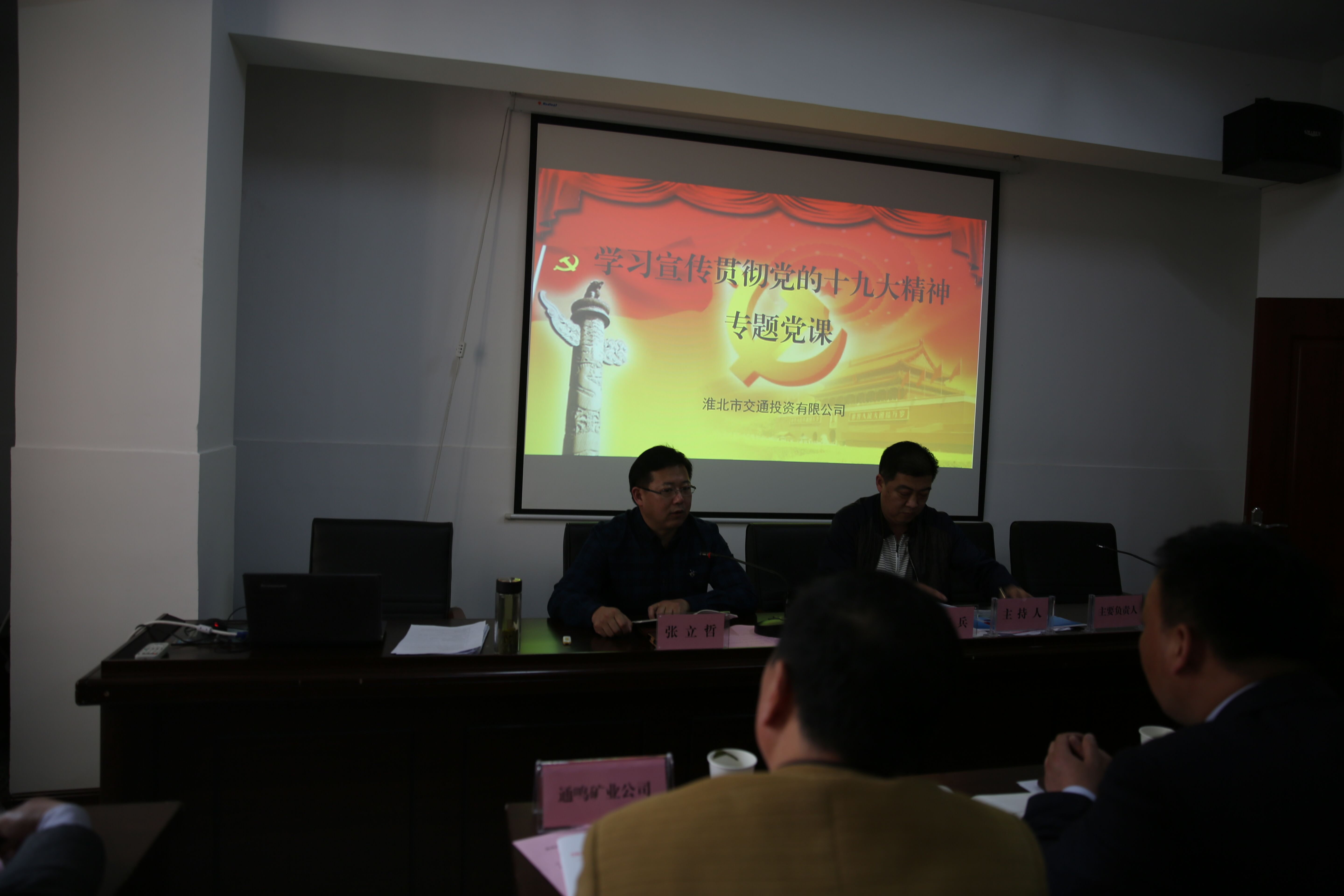 2018年4月1日下午,集團(tuán)公司黨委委員、副總經(jīng)理、交投公司總經(jīng)理張立哲同志在集團(tuán)公司4樓會議室組織召開2018年第一季度經(jīng)營分析會暨2018年第一次專題黨課,參加會議的成員有交投公司全體人員、下屬子公司經(jīng)營班子、中層管理人員、各公司財務(wù)人員及交投公司全體黨員。
