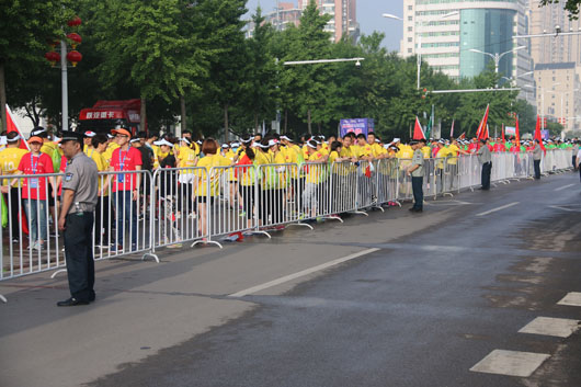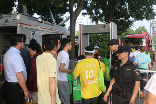 13日凌晨5:30分,負(fù)責(zé)市府廣場周邊區(qū)域的安保人員全部到崗。運(yùn)動員入口安全檢查、重要部位值守、秩序維持、車輛指引、賽道沿線封閉防控等安保工作有序進(jìn)行。