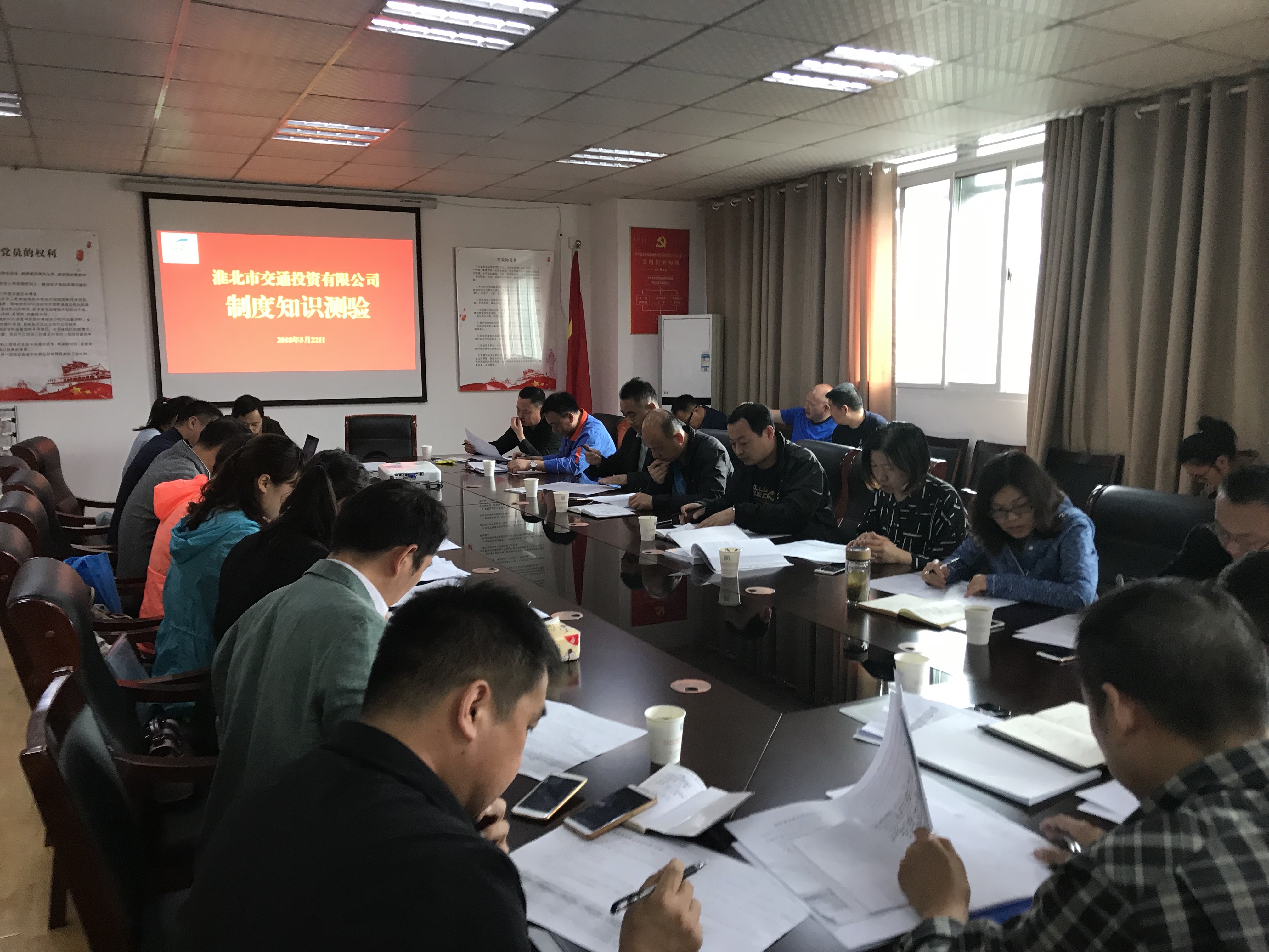 2018年5月22日上午交投公司組織開展了集團公司部分制度培訓(xùn)及考核活動。此次培訓(xùn)旨在進一步增強交投公司下屬各子公司領(lǐng)導(dǎo)班子人員規(guī)矩紀(jì)律意識,強化集團公司規(guī)章制度的約束力和執(zhí)行力,使公司管理規(guī)范化、經(jīng)營專業(yè)化。