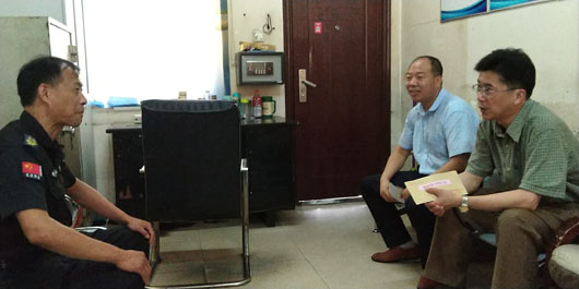 在中國共產(chǎn)黨成立97周年之際,7月13日上午,集團公司黨委委員、紀委書記王獻忠在淮北市保安有限公司黨支部書記、副書記的陪同下來到押運一中隊看望慰問生活困難的老黨員,送去黨組織的關(guān)懷和溫暖。他要求各級黨組織要懷著深厚感情,用心用情為困難老黨員排憂解難,讓廣大老黨員和困難黨員切實感受到黨組織的關(guān)懷與溫暖。