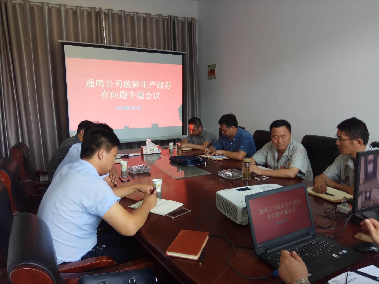 2018年8月2日上午,在通鳴礦業公司召開了關于破碎生產線存在問題的專題會議,集團公司副總經理張立哲、棗莊鑫金山機械設備有限公司負責人、通鳴礦業公司相關人員參加了會議。