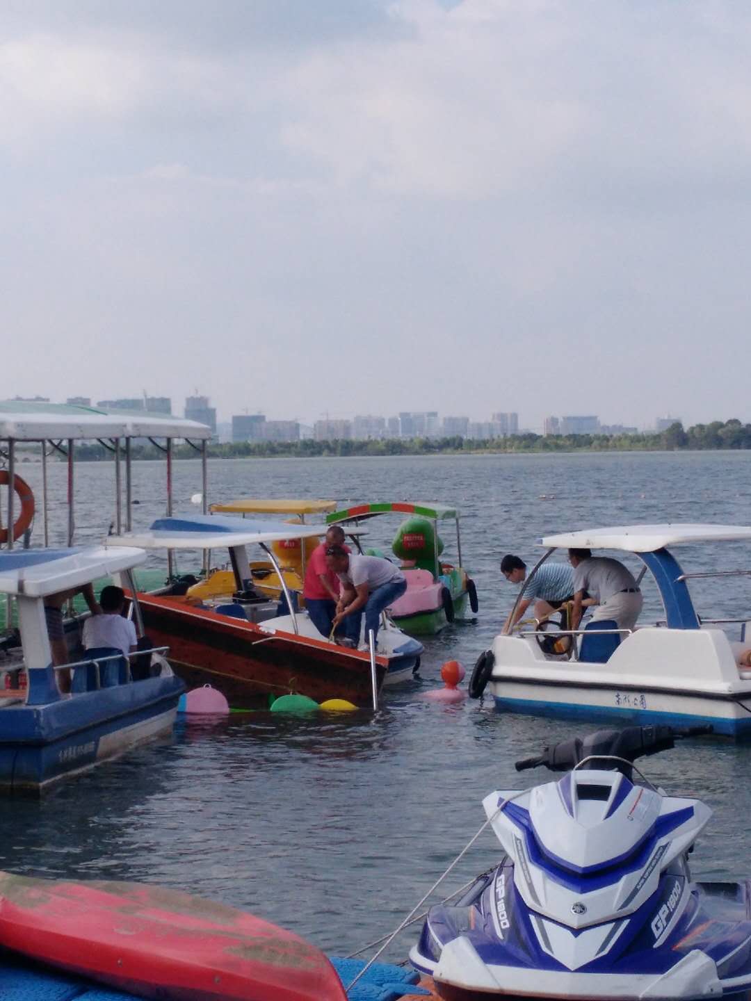 受連日暴雨影響,南湖景區多處出現積水現象,抗訊領導小組第一時間趕赴現場,進行應急處置。工作人員冒雨挖掘排水渠,設置安全警戒線,及時清掃路面淤泥和倒伏的樹木。另外,旅游碼頭由于湖區水位上漲,浮橋防抱柱達到最高升降點,工作人員現場進行加高加固及時調整躉船泊位,消除安全隱患。