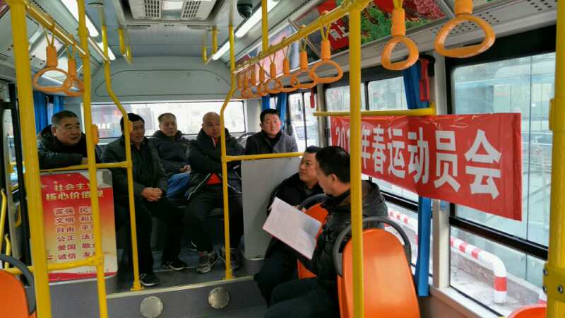 新年伊始,公交第二分公司精心謀劃春運工作,認真做好春運期間市民出行的保障,1月20日晚在駕駛員全部收車后召開了春運動員會。會上要求,要將春運列為當前中心工作,首要任務,堅持把安全生產放在首位,層層落實安全生產責任制;加強對公交車輛的檢修維護,所有參運車輛必須經過檢查,杜絕車輛帶病行駛;加強駕駛員的職業道德、安全服務教育和營運服務動態監管,嚴格春運期間檢查力度,做到“逢可疑物(包)必查,逢危險品必查”,堅持杜絕乘客攜帶易燃易爆危險品及鞭炮上車;加強營運、安全、機務、等部門的通力配合;完善惡劣天氣下公交應急預案,切實做好晴冷、霧霾、凍雨、暴雪、結冰等惡劣天氣安全營運應對措施,保障公交營運服務正常出行。
