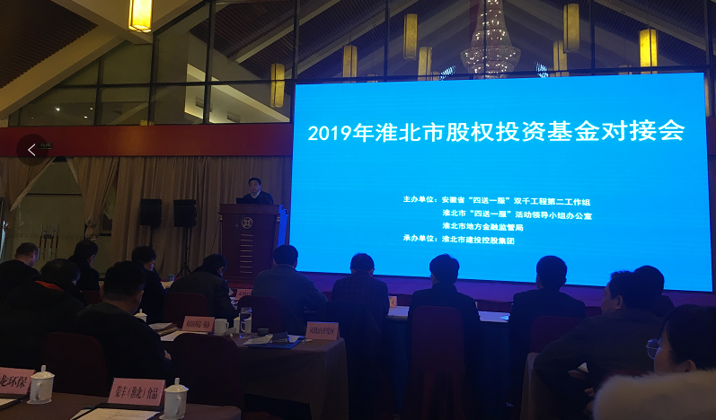 2019年2月22日,由安徽省“四送一服”雙千工程第二工作組、淮北市“四送一服”營商環境辦公室、市地方金融監管局主辦、淮北市建投集團承辦的2019年淮北市股權投資基金對接會在我市口子國際大酒店順利召開,80余家企業,逾百人參會。會議邀請到了市科技局、市經信局、市財政局、市地方金融監管局、濉溪縣等相關單位參加,并邀請了各個開發區負責同志參加此次會議。