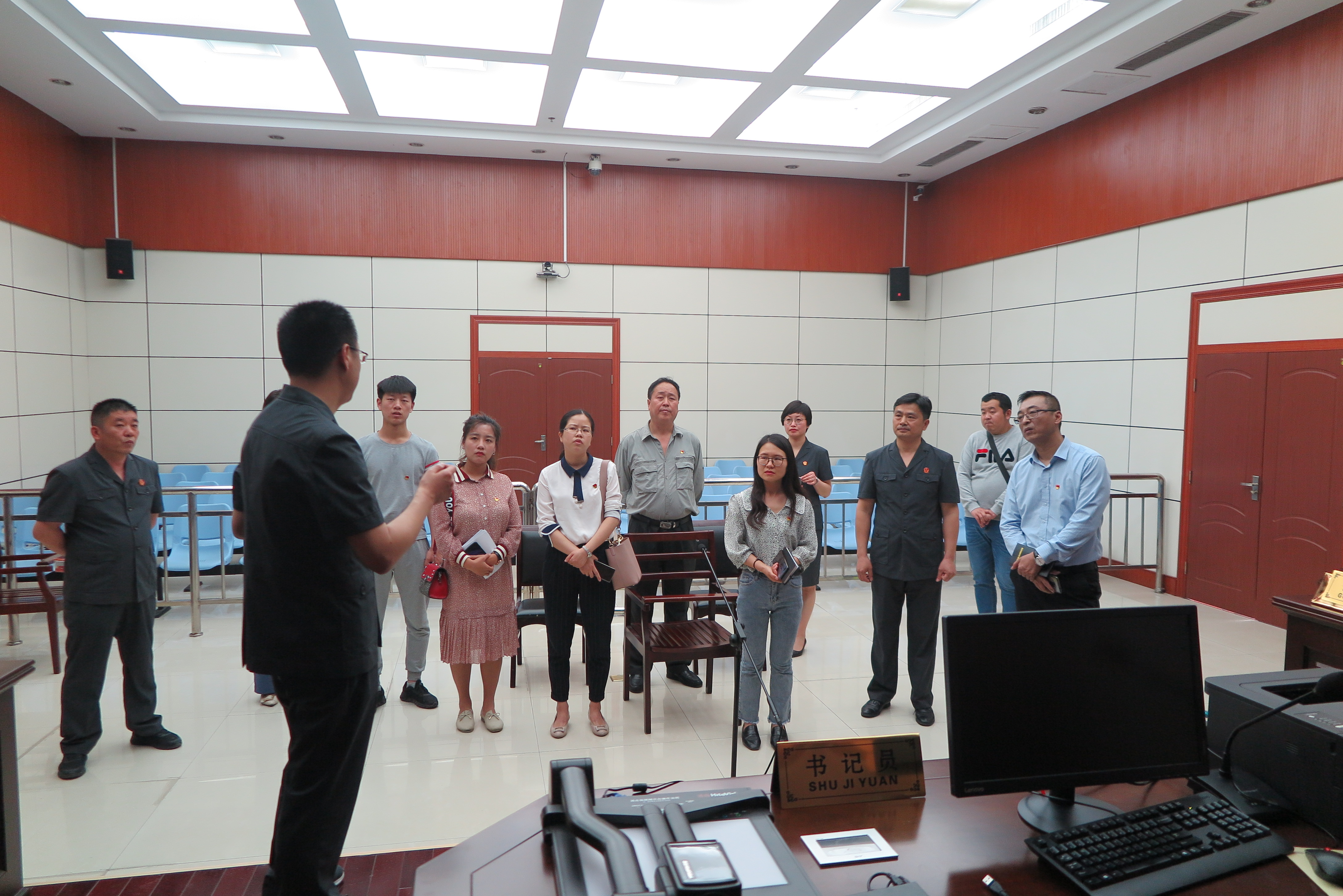 在市中院辦公室黨支部相關負責人的陪同下,同創黨支部一行參觀了科技審判法庭、院史陳列室、反腐倡廉教育室等,深入了解法院的審判工作,同時就同創擔保涉案資產處置工作進行了交流。
