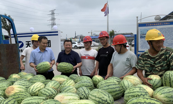 時值炎炎夏日、酷暑三伏,臨投公司各在建項目施工一線人員依然堅守在工作崗位上,為煤化工基地的發展揮灑著汗水。為了給施工一線人員送去絲絲清涼和關懷,臨投公司于7月18日前往火神廟村貧困戶戴鳳英家購買了愛心西瓜2200斤,并赴各在建項目現場,將愛心西瓜送到了施工一線人員手中,向他們在高溫酷暑中的辛苦勞動表示慰問,并要求各施工單位做好防暑降溫工作,確保施工安全。