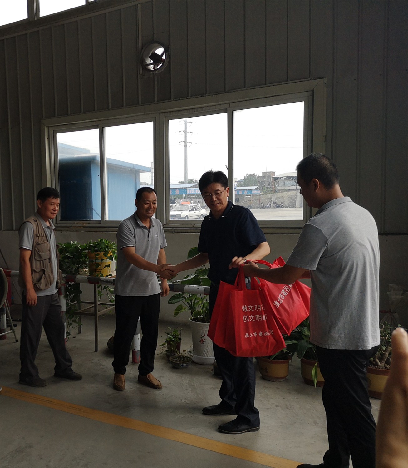 炎炎夏日,烈烈酷暑。8月1日下午,市建投集團黨委委員、紀委書記王獻忠一行來到金盾金鷹公司將防暑物資送到奮戰在一線員工的手中,并囑咐他們在高溫時期注意安全,合理的安排工作時間,做到安全度夏。