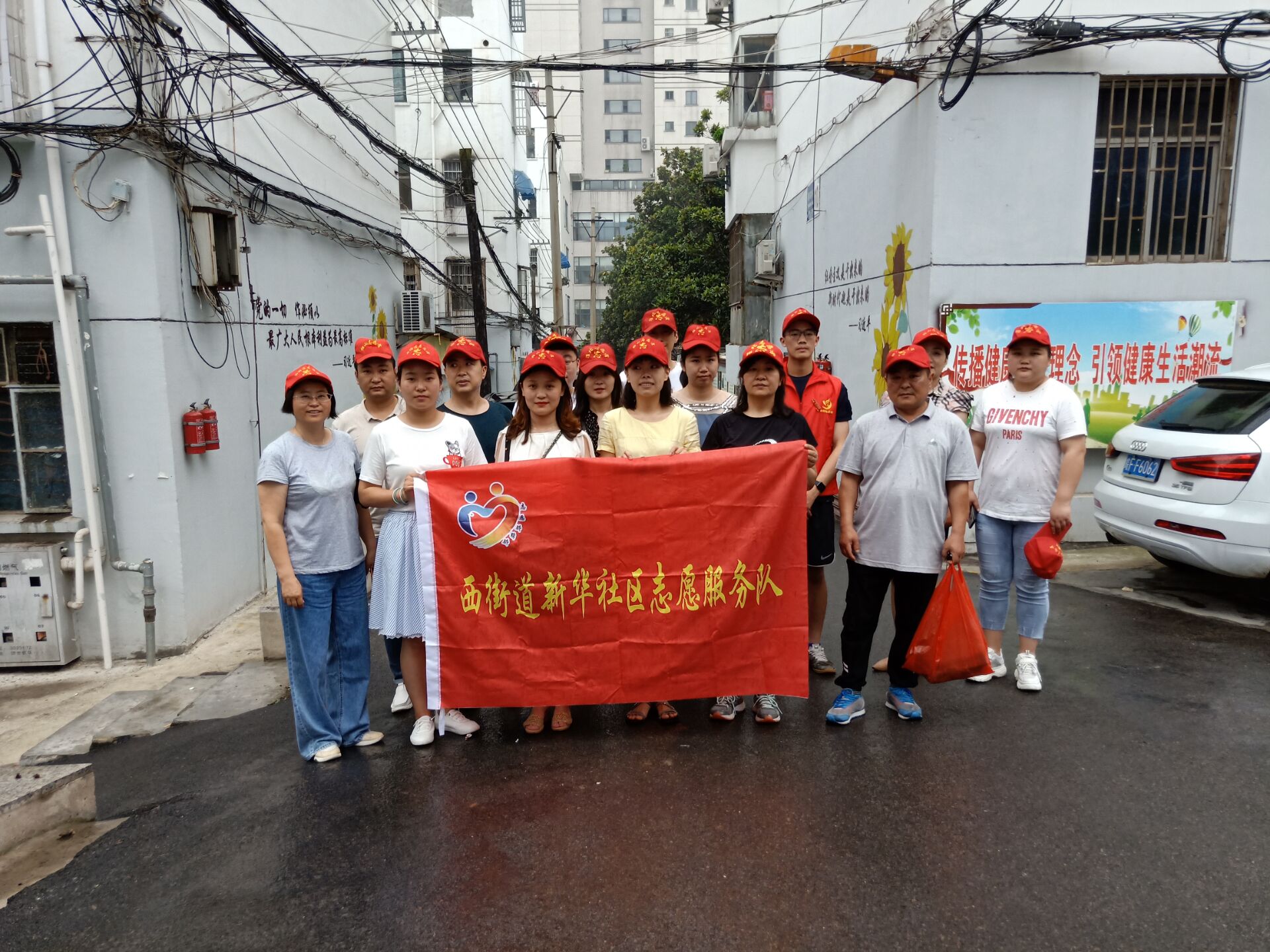 圖為建投商貿黨支部和民政局的黨員同志與新華社區“結對共建”,開展“黨員奉獻日”活動,宣傳“垃圾分類”,清潔社區衛生。