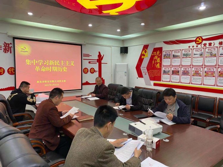422日下午,為持續推進黨史學習教育走實走深,保安公司召開新民主主義革命時期歷史專題學習會,公司支部班子、中層管理人員參與本次學習。